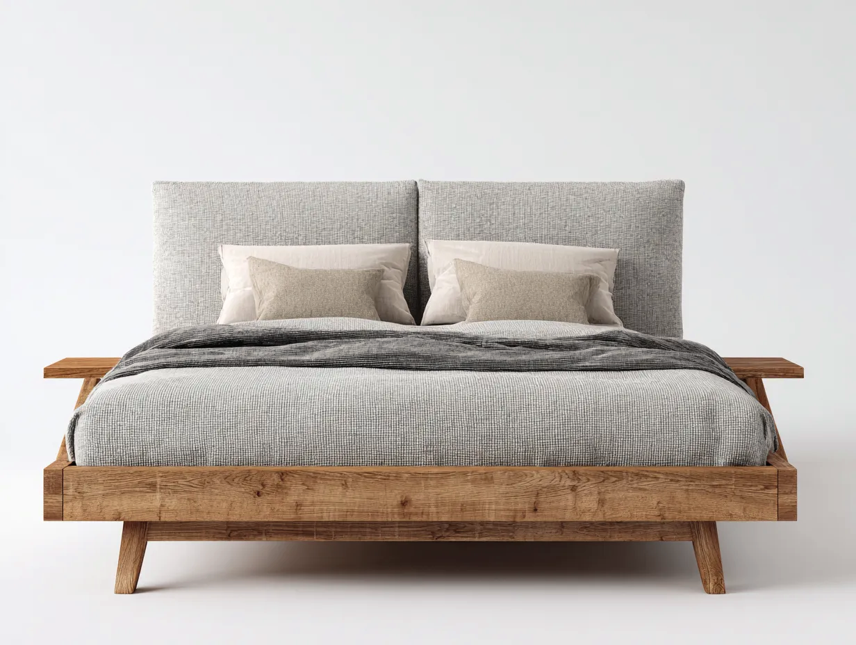 Letto matrimoniale dal carattere sobrio e raffinato, pensato per ambienti notte moderni e accoglienti. La combinazione tra struttura in legno e testiera rivestita crea un equilibrio estetico adatto a diversi stili di arredamento.