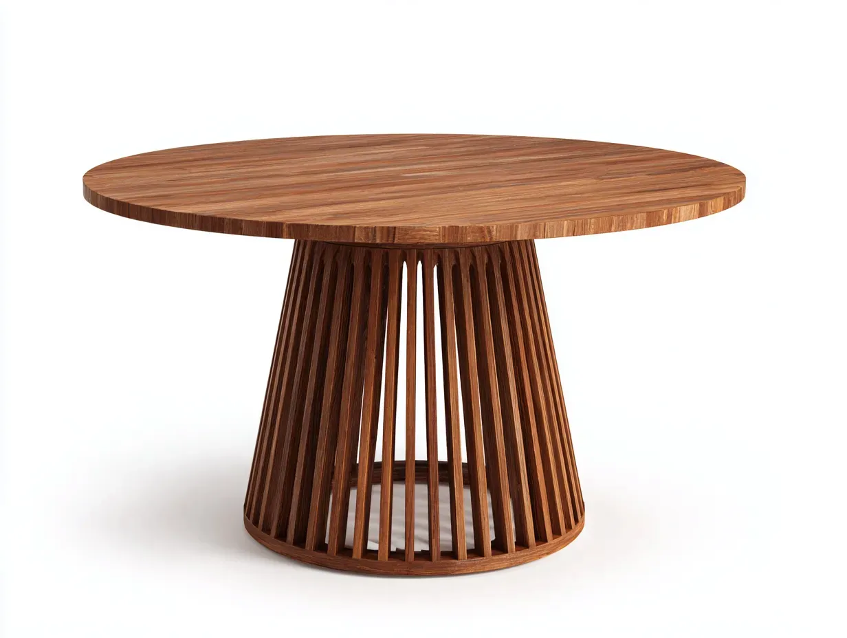 Questo tavolo da giardino è pensato per l'arredo di spazi esterni come giardini, terrazze e patii. La struttura con base centrale consente una disposizione ordinata delle sedute e offre una superficie stabile per pranzi e momenti di convivialità all'aperto.